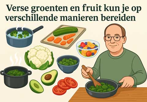 - Recepten in meerdere bereidingswijzen (bijv. stoven, grillen, bakken, rauw)